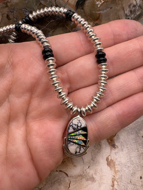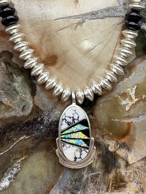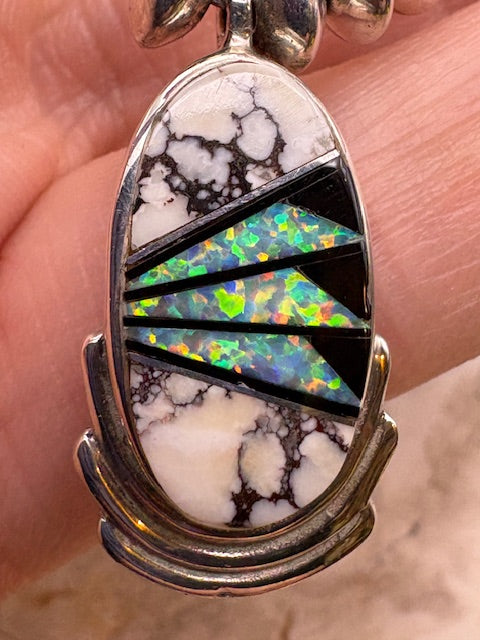 Native American Made Inlaid Multi-Stone and Sterling Silver Pendant