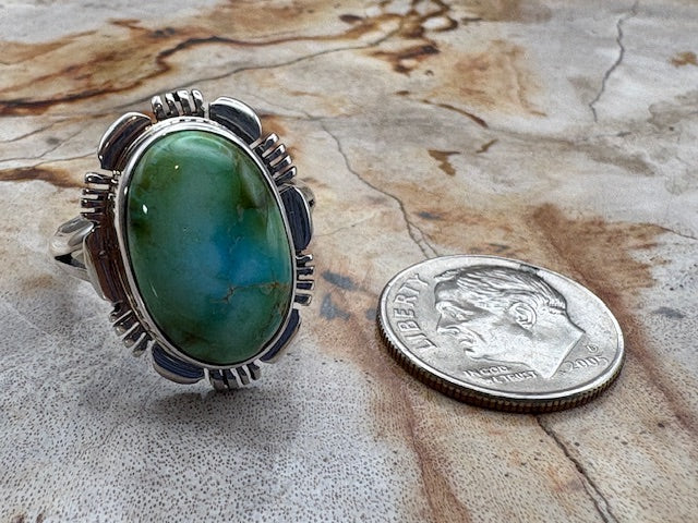 Native American Made Bright, Bright Blue Traditional Style Turquoise and Sterling Silver Ring