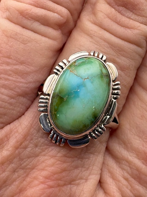 If you are looking for a traditional style Native American ring with an extremely bright blue turquoise stone then look no further. Twist wire bezel...